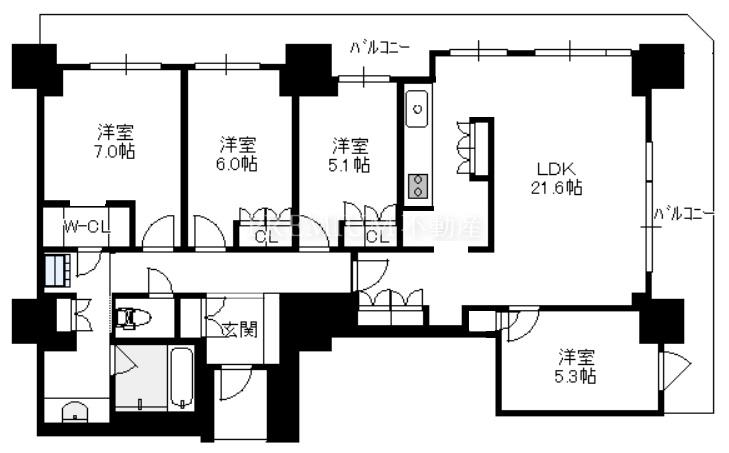 間取り 4LDK(洋7.0 洋6.0 洋5.3 洋5.1 LDK21.6 )