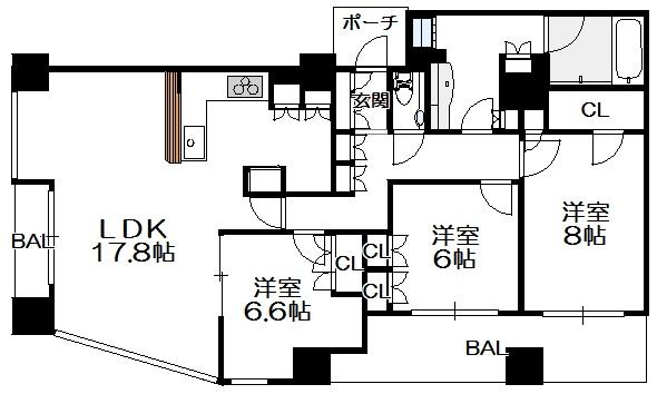 間取り 3LDK(洋8.0 洋6.6 洋6.0 LDK23.0)