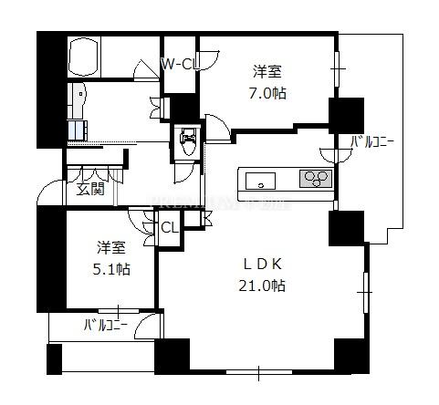 間取り 2LDK(洋7.0 洋5.1 LDK21.0)