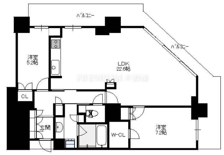 間取り 2LDK(洋7.2 洋5.2 LDK22.6)
