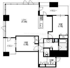 間取り 2LDK(洋6.7 洋6.0 LDK25.4)