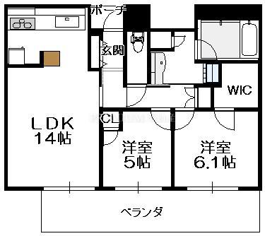 間取り 2LDK(洋6.1 洋5.0 LDK14.0)