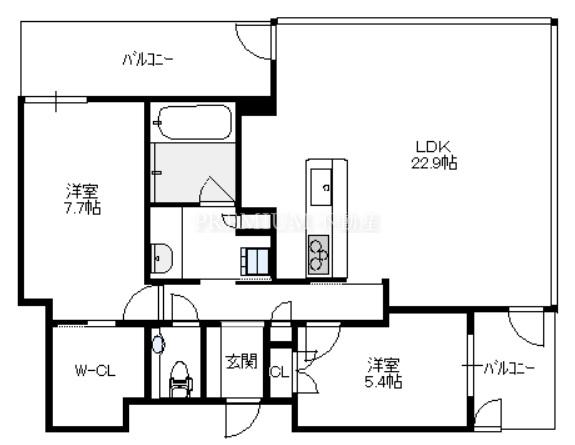 間取り 2LDK(洋7.7 洋5.4 LDK22.9)