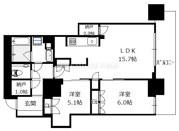 間取り 2SLDK(洋6.0 洋5.1 S1.0 S0.9 LDK15.7)