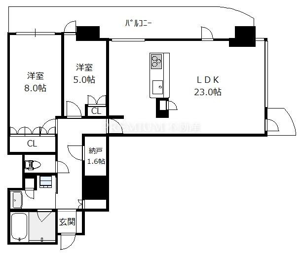 間取り 2SLDK(洋8.0 洋5.0 S1.6 LDK23.0)