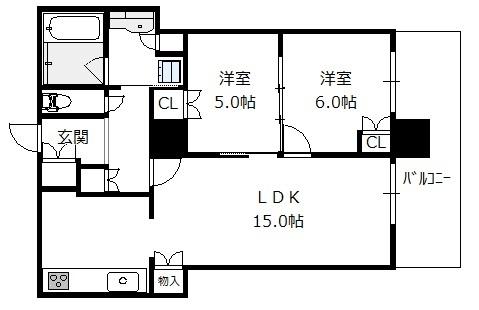 間取り 2LDK(洋6.0 洋5.0 LDK15.0)