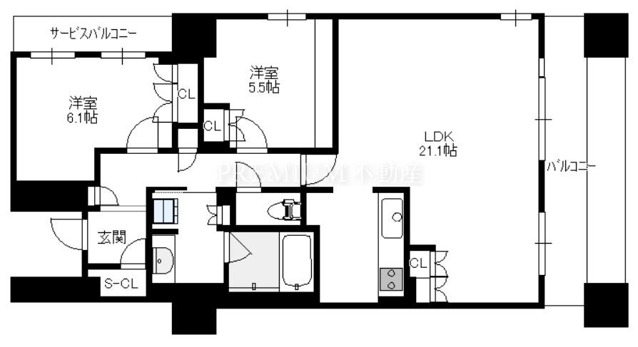 間取り 2LDK(洋6.1 洋5.5 LDK21.1)