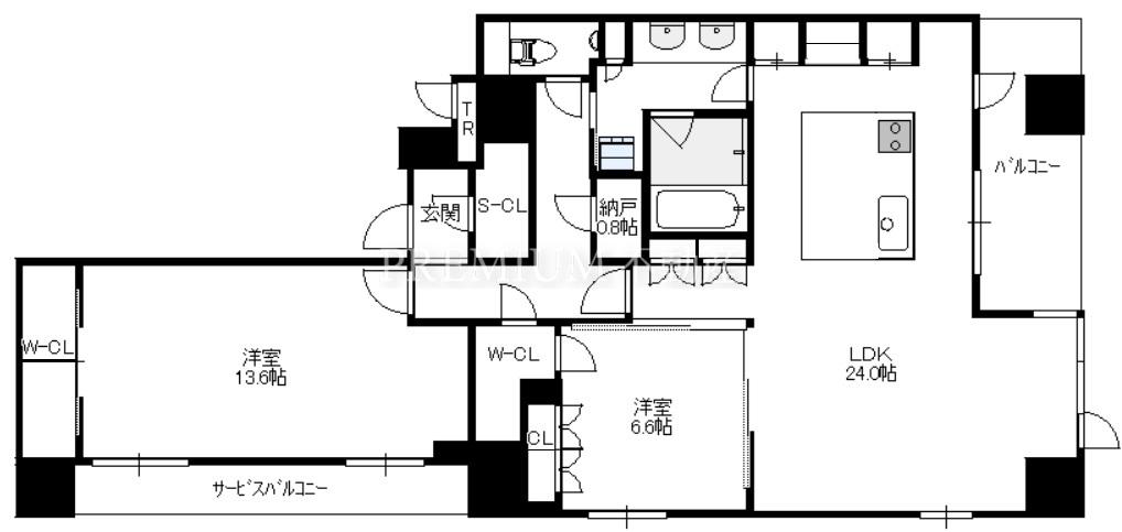 間取り 2SLDK(洋13.6 洋6.6 S.08 LDK24.0)