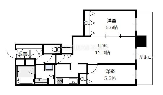 間取り 2LDK(洋6.6 洋5.3 LDK15.0)