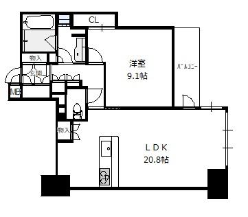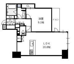 間取り 1LDK(洋9.1 LDK20.8)