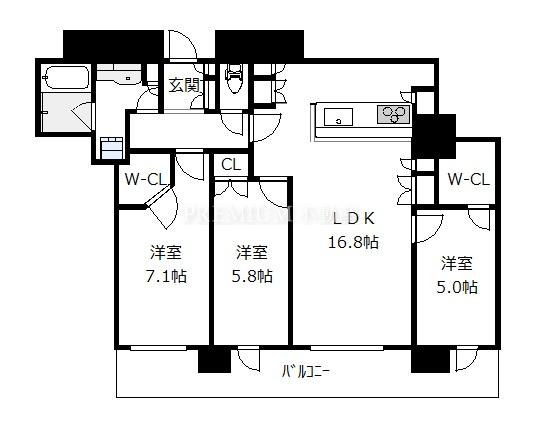 間取り 3LDK(洋7.1 洋5.8 洋5.0 LDK16.8)