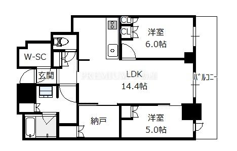 間取り 2SLDK(洋6.0 洋5.0 S2.6 LDK14.3)