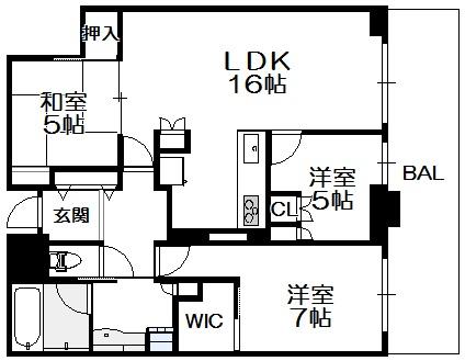 間取り 3LDK(洋7.0 洋5.0 和5.0 LDK16.0)