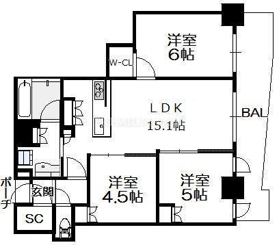 間取り 3LDK(洋6 洋5 洋4.5 LDK15.1 )