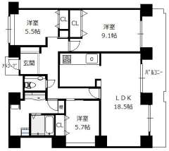 間取り 3LDK(洋9.1 洋5.7 洋5.5 LDK18.5)