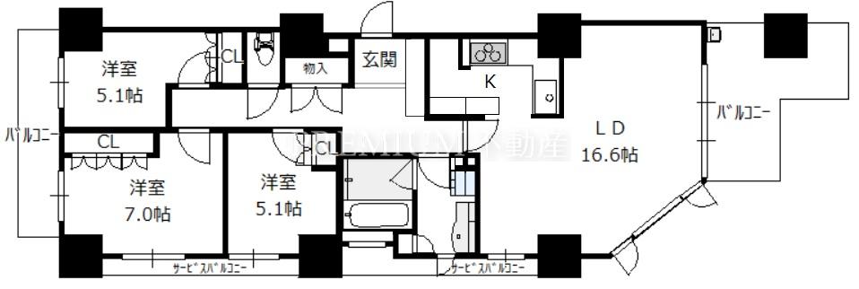 間取り 3LDK(洋7.0 洋5.1 洋5.1 LDK20.5)