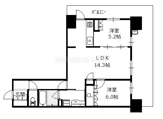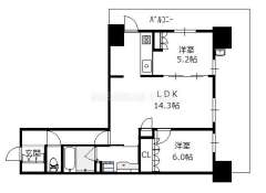 間取り 2LDK(洋6.0 洋5.2 LDK14.3 )