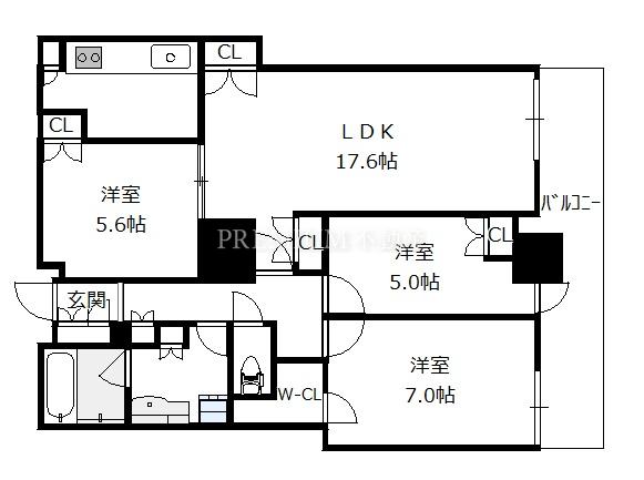 間取り 3LDK(洋7.0 洋5.6 洋5.0 LDK17.6)