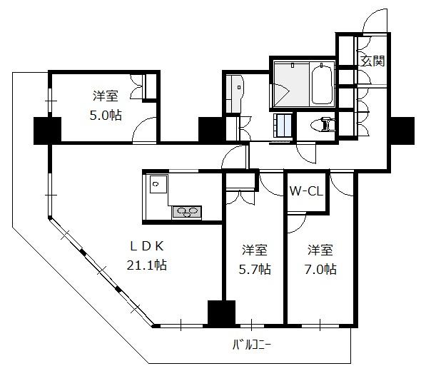 間取り 3LDK(洋7.0 洋5.8 洋5.0 LDK14.3)