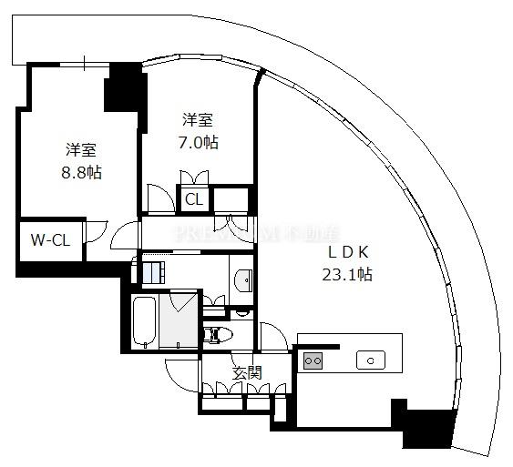 間取り 2LDK(洋8.8 洋7.0 LDK23.1)