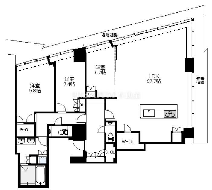 間取り 3LDK(洋9.8 洋7.4 洋6.7 LDK37.7)