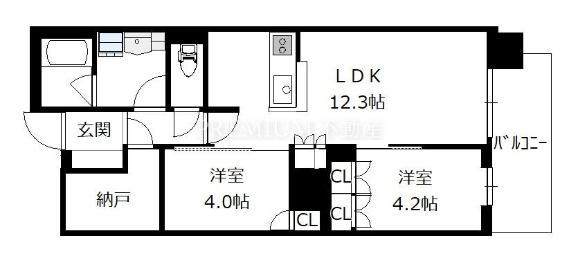間取り 2SLDK(洋4.2 洋4.0 LDK12.3)