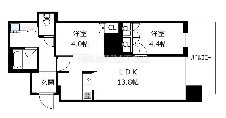 間取り 2LDK(洋4.4 洋4 LDK13.8)