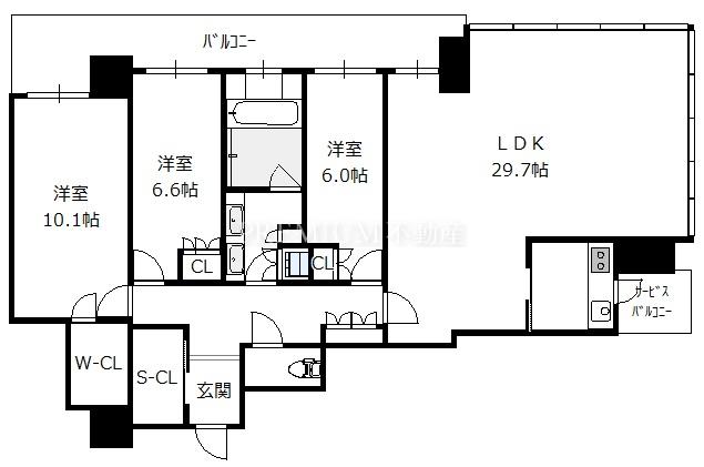 間取り 3LDK(洋10.1 洋6.6 洋6.0 LDK29.7)