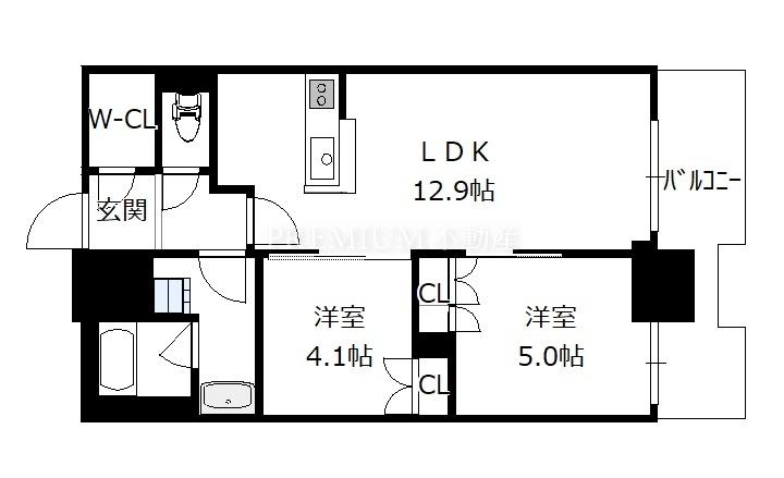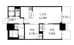 間取り 2LDK(洋5.0 洋4.1 LDK12.9)