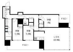 | 7,980万円 利回り 3% | 22階 | 1SLDK | 46.42㎡ | 北 | |||