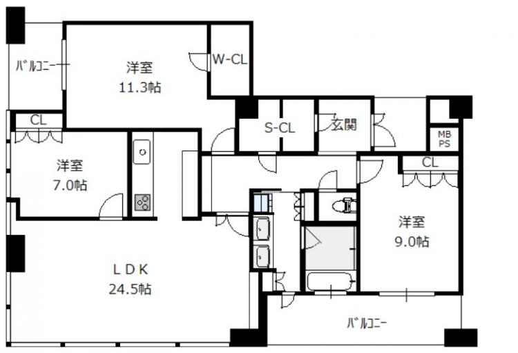 間取り 3LDK(洋11.3 洋9.0 洋7.0 LDK24.5)