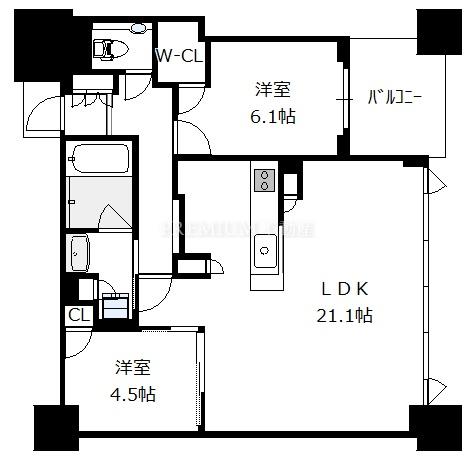 間取り 2LDK(洋6.1 洋4.5 LDK21.1)