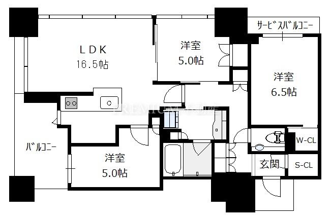 間取り 3LDK(洋6.5 洋5.0 洋5.0 LDK16.5)