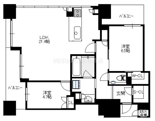 間取り 2LDK(洋6.5 洋4.7 LDK21.4)