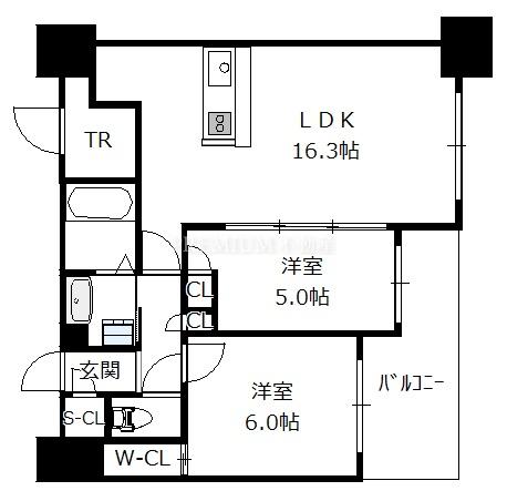 間取り 2LDK(洋6.0 洋5.0 LDK16.3)