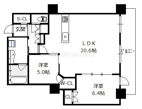 Layout: 2LDK(洋6.4 洋5.0 LDK20.6)