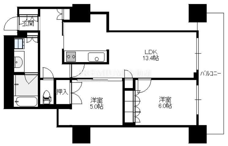 Layout: 2LDK(洋6.0 洋5.0 LDK13.4 )