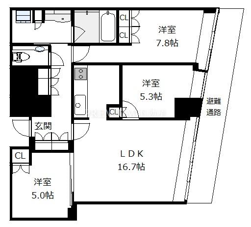 Layout: 3LDK(洋7.8 洋5.3 洋5.0 LDK16.7)