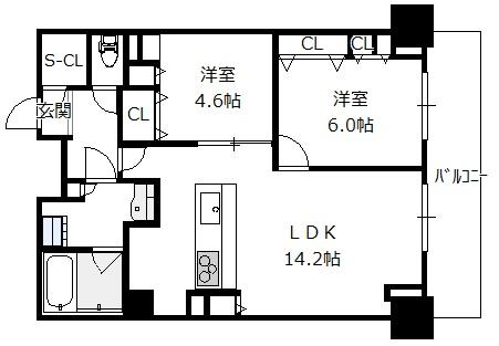 Layout: 2LDK(洋6.0 洋4.6 LDK14.2)