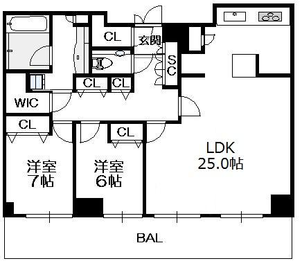 Layout: 2LDK(洋7.0 洋6.0 LDK25.0)