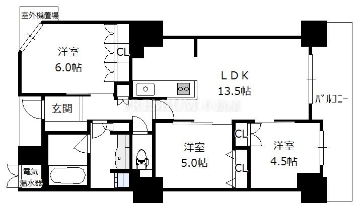 Layout: 3LDK(洋6.0 洋5.0 洋4.5 LDK13.5)
