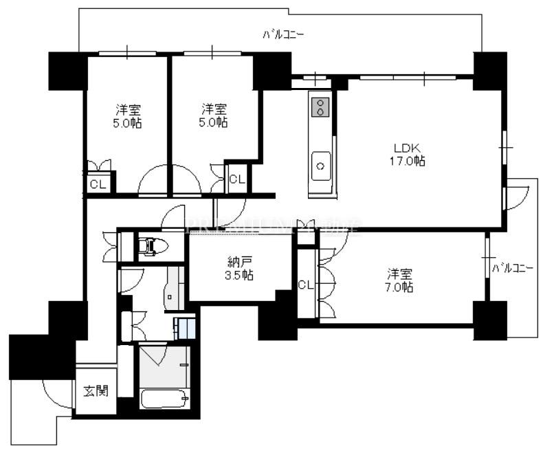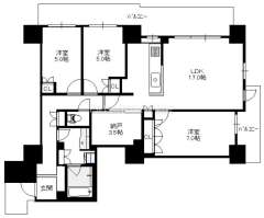 Layout: 3SLDK(洋7.0 洋5.0 洋5.0 S3.5 LDK17.0)