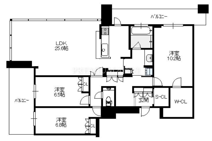 Layout: 3LDK(洋10.2 洋6.8 洋6.5 LDK25.6)