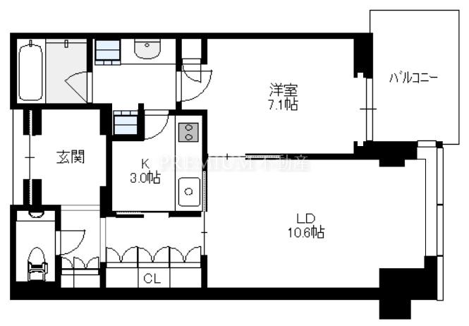 Layout: 1LDK(洋7.1 LD10.6 K3.0)