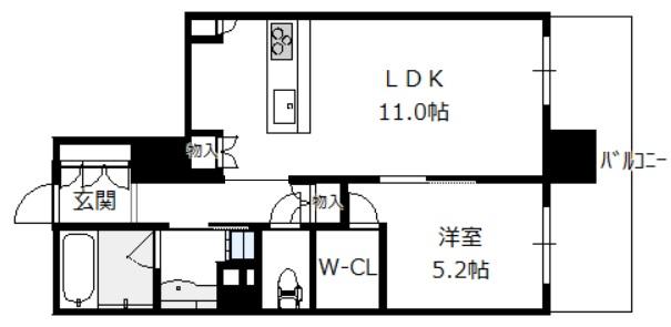 Layout: 1LDK(洋5.2 LDK11.0)