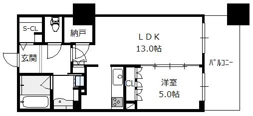 Layout: 1SLDK(洋5.0 S1.2 LDK13.0)