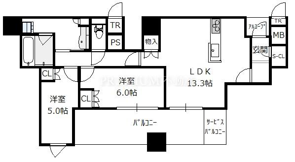 Layout: 2LDK(洋6.0 洋5.0 LDK13.3)