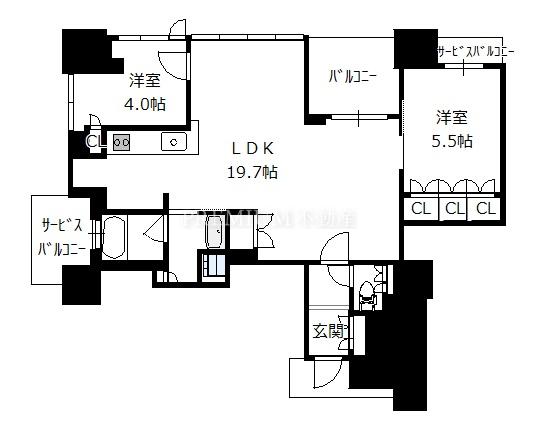 Layout: 2LDK(洋5.5 洋4.0 LDK19.7)