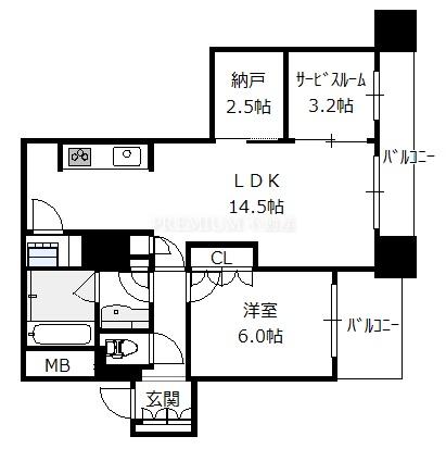 Layout: 1SLDK(洋6.0 S3.2 S2.5 LDK14.5)