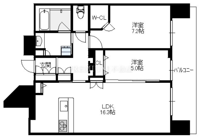 Layout: 2LDK(洋7.2 洋5.0 LDK16.3)